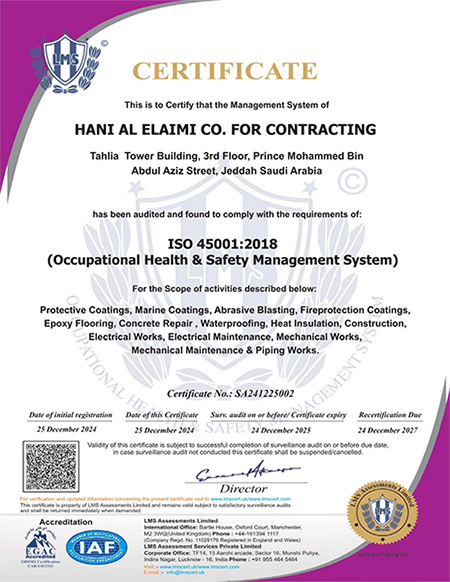 Founded over 40 years ago, Hani Al Elaimi Company has built a strong reputation for excellence in industrial coatings and maintenance services. Serving Saudi Arabia's top industries, we specialize in protecting steel, concrete, pipelines, and equipment against corrosion, fire, and environmental damage.
